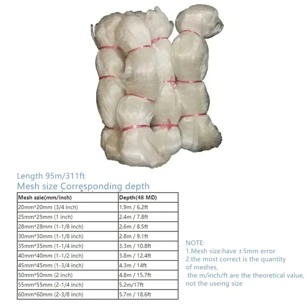 About the depth and length: the most correct is the quantity of meshes, the m/inch/ft are the theoretical value, not the useing size