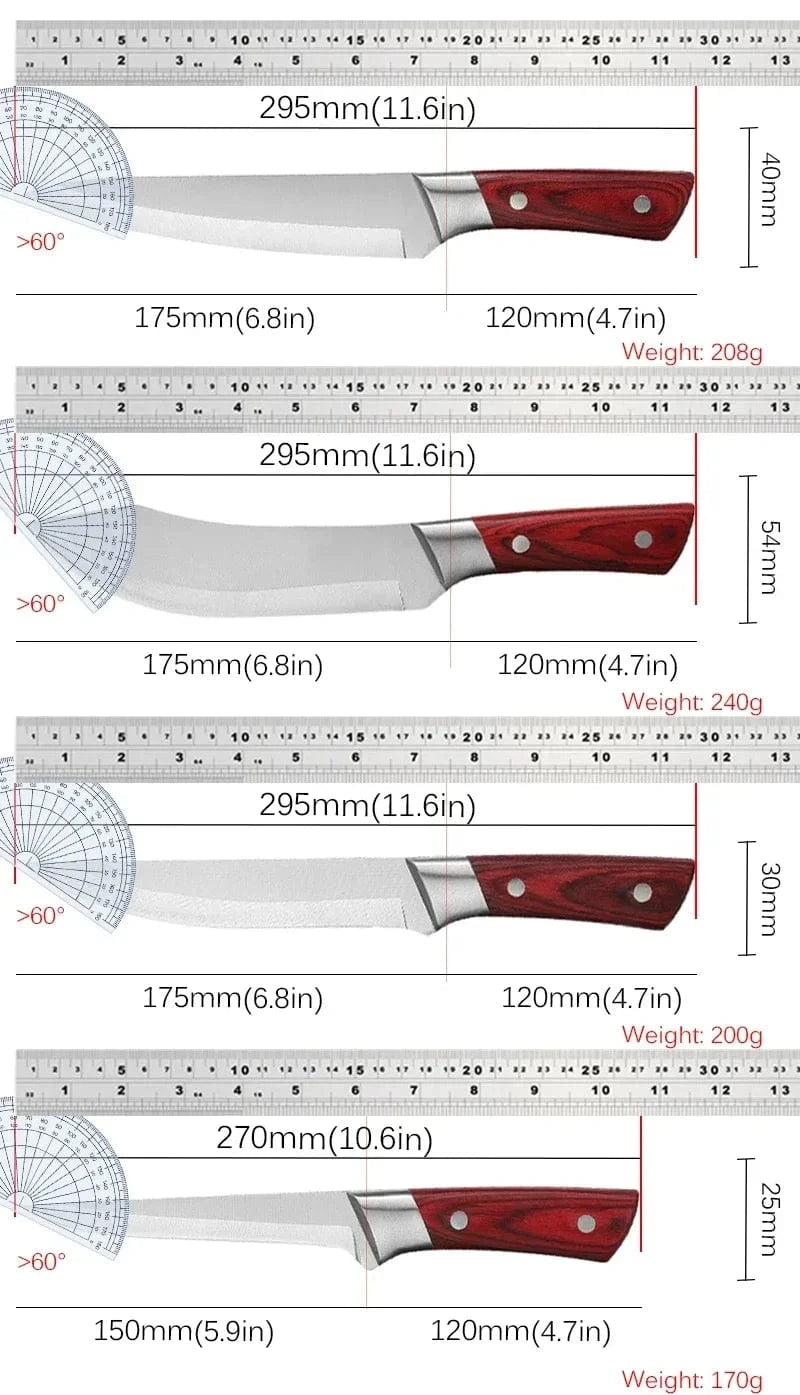 1. Multi-purpose boning knife: This handmade boning knife is classified as a multi-purpose kitchen knife. This bone knife almost meets all the chef's requirements for the knife. The extremely strong and durable blade can be used to cut pigs, chickens, ducks, fish, vegetables, etc.