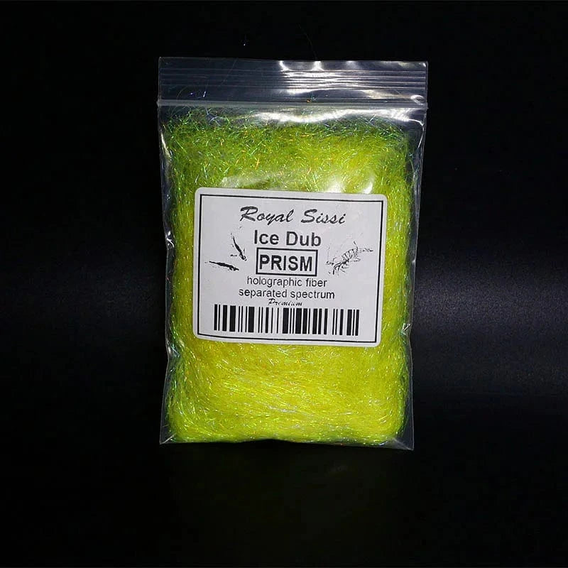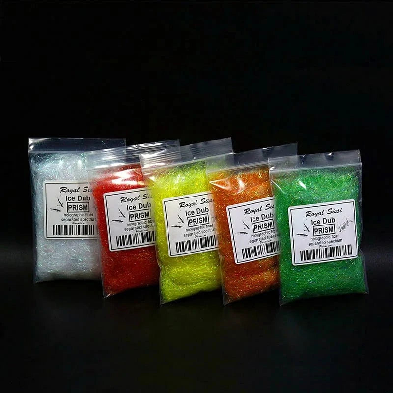 Prism Ice Dub is a premium fly tying dubbing that gives off a brilliant sparkle underwater and dubs beautifully. This dubbing is by far the most popular amongst our customers, and for good reason. It attracts fish! It can be used on dry flies or nymphs and can also be mixed with natural dubbing fibers for added translucence.