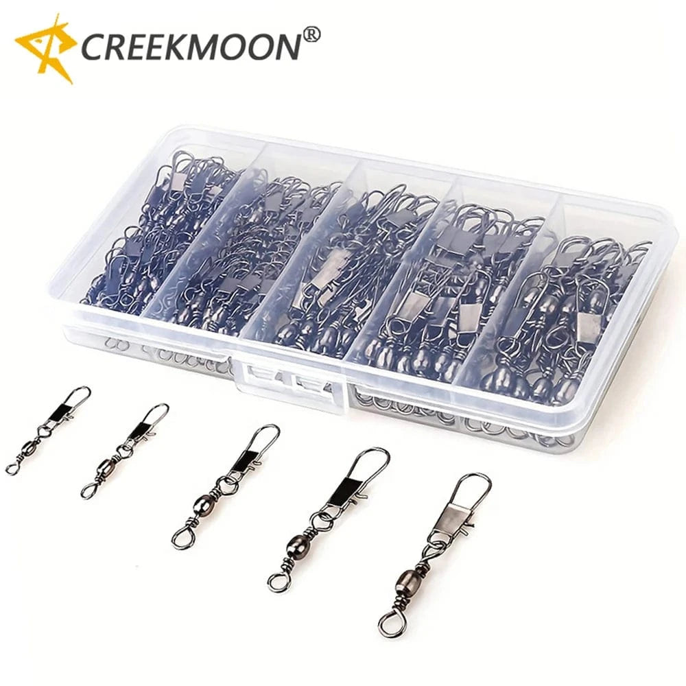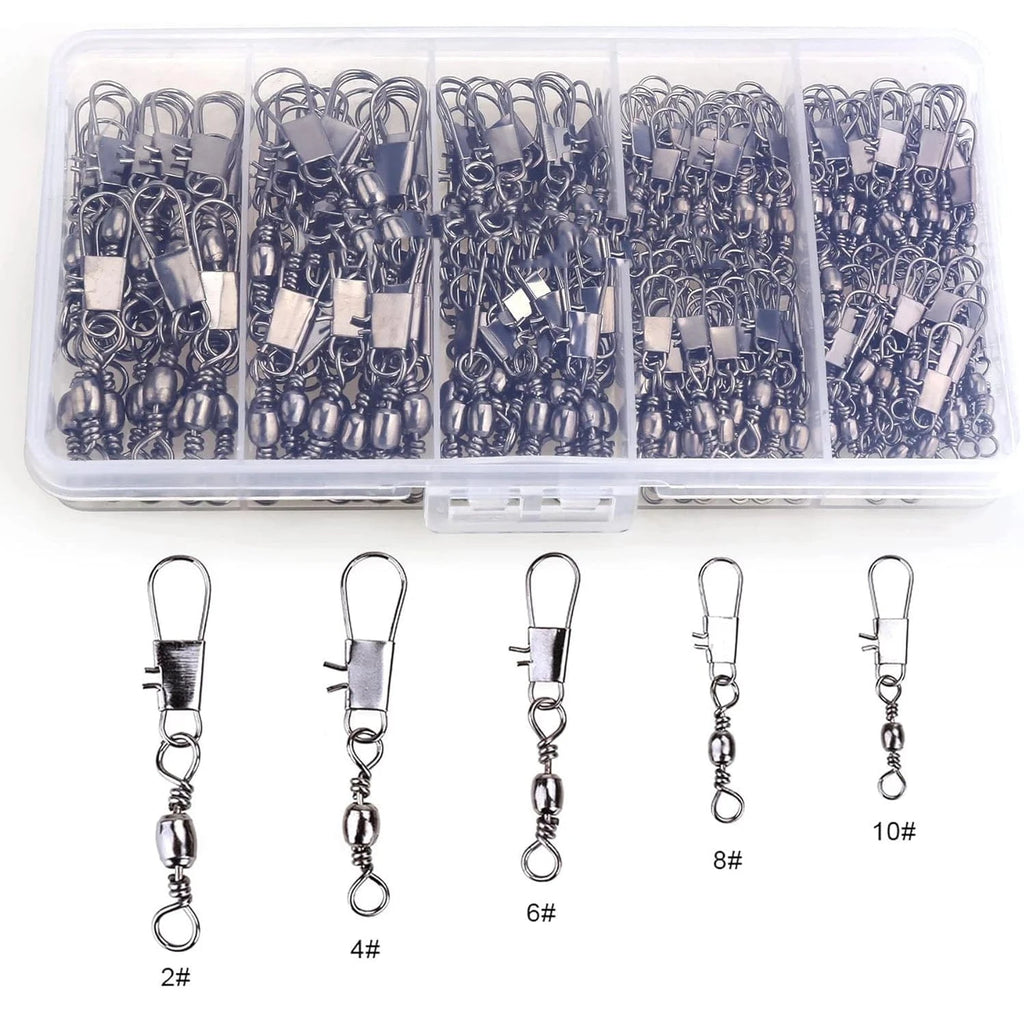 1) Valued Packing: Total 100pcs fishing swivels snap connectors in a reusable plastic box,