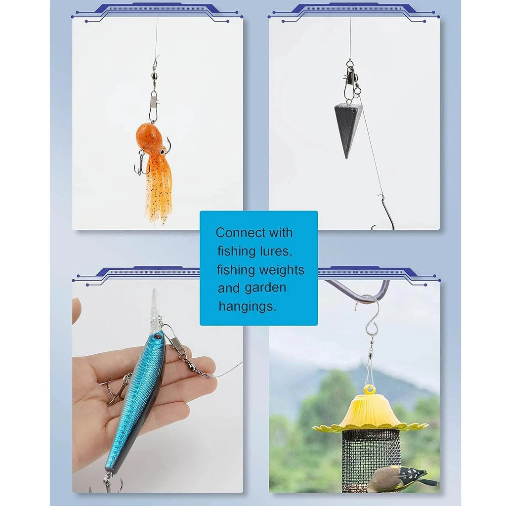 3) Durable & Sturdy: Ultra strong fishing snap swivels. Excellent corrosion resistance, abrasion resistance, shock resistance and tension. And snap latch is easy to open and close, stay locked to hold weights, no losing your lure and fish.
