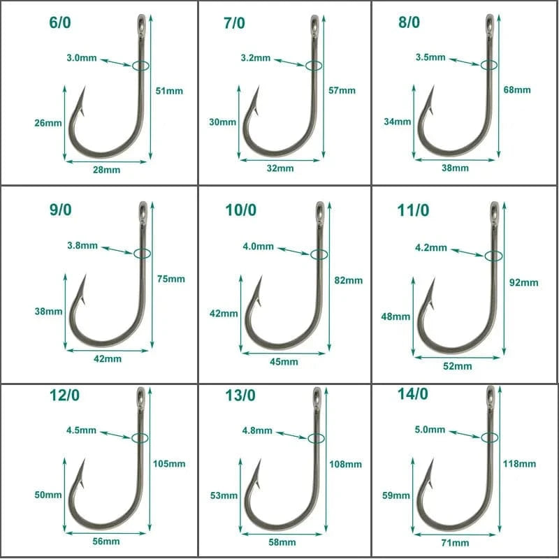 10pcs/lot Size 6/0 7/0 8/0 9/0 10/0 11/0 12/0 13/0 14/0 Stainless Steel 7691 Southern Tuna Fishing Hook Big Game Fishing Hook