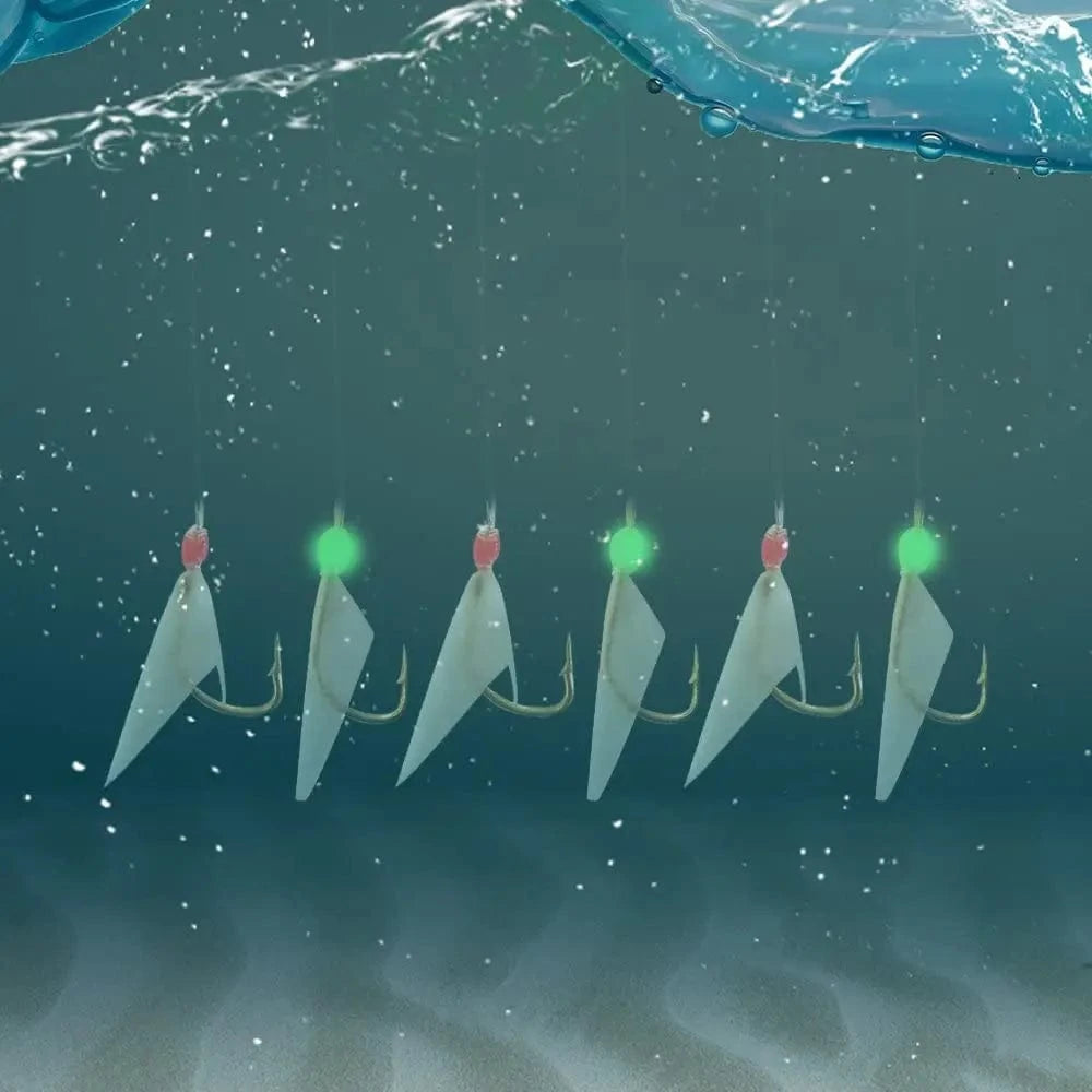 120PCS=20Packs Sea fishing live bait rigs Luminous Beads String hook Real Fish Skin Mackerel Sea Saltwater Rig Fishing Lure