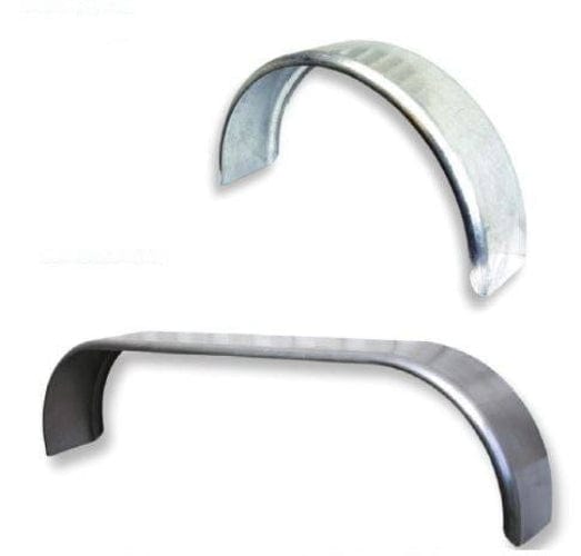 Curved with rolled edge, galvanised steel. Wheels 13-14" 200mm wide