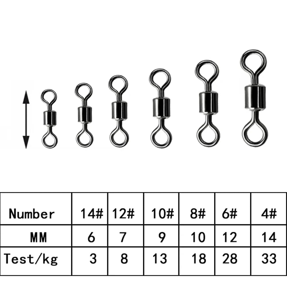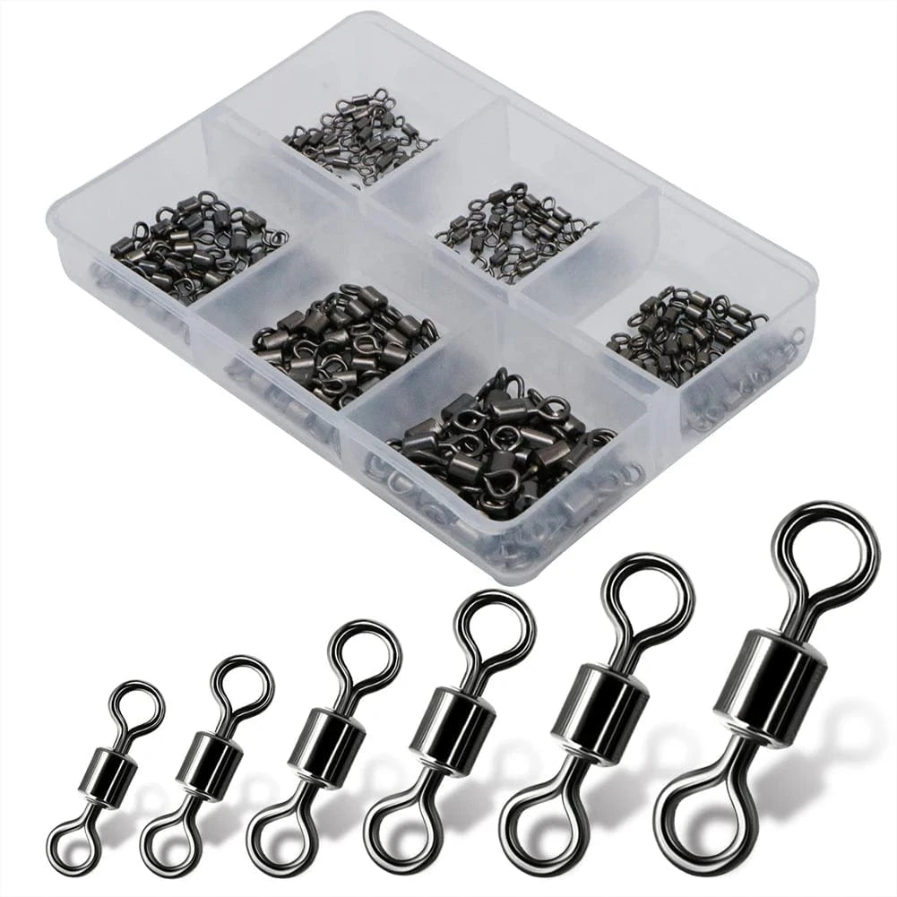 150pcs/1box 6 Size Fishing Swivel Solid Connector Ball Bearing Snap Fishing Swivels Rolling Stainless Steel Bead Fish Tackle Box