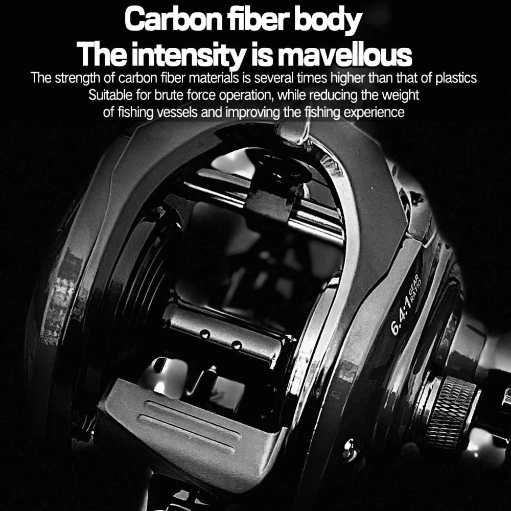 15KG Drag Jig Baitcast Fishing Reel Saltwater Big Game Reel Dual-row Powerful Magnet Carbon Fiber Baitcasting Reels 6.4:1 8+1BB