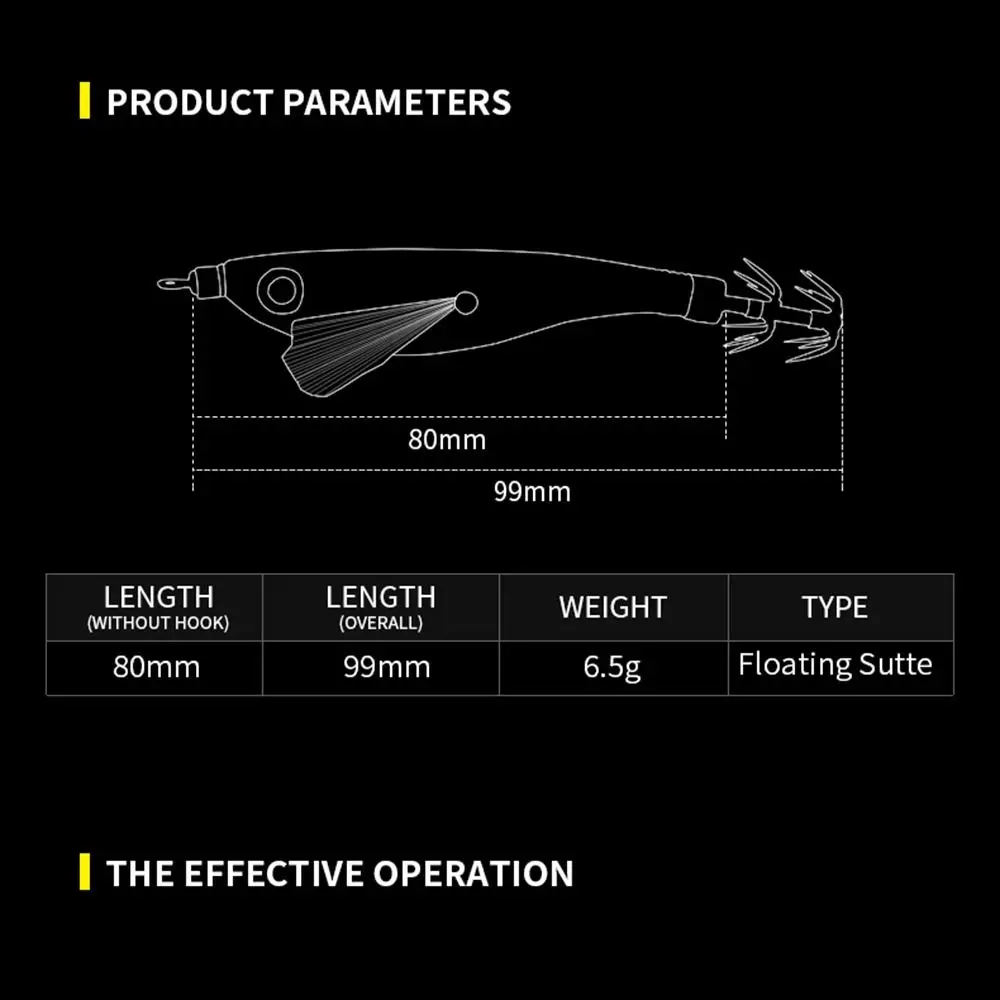 1pc 99mm 6.5g Fishing Lure Artificial Squid Hook Jigs Noctilucent Squid Cuttlefish Jigs Lures Wood Shrimp For Sea Fishing