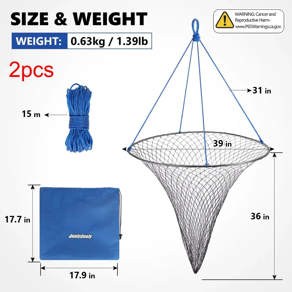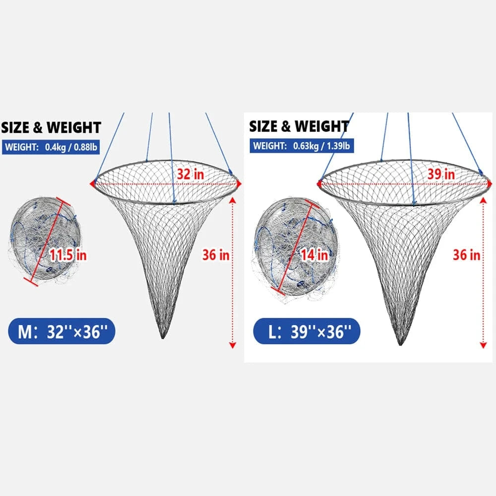 【Water-Resistant & Anti-Corrosion】The drop net for pier fishing uses high quality nylon as fishing net. And a rubber protection layer surrounds the the hoop further prevent the stainless steel from corrosion.