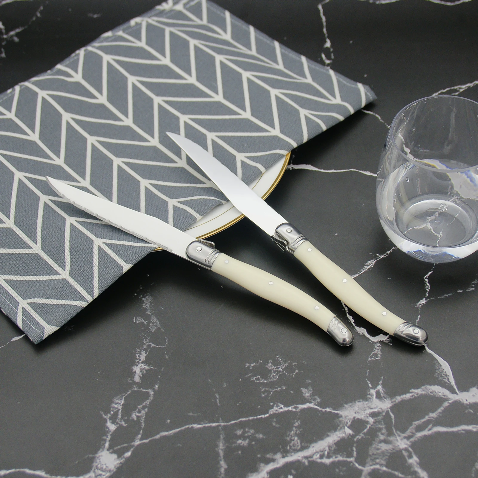 4/6/10/12pcs Laguiole Steak Knife set Pear White Plastic Handle Table Knives 9inch 23.5cm Dinner knife set
