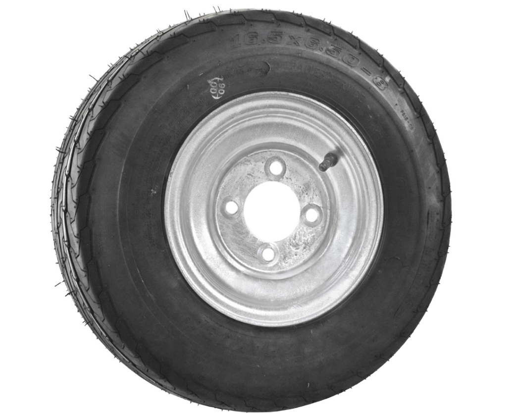 8” Wheel and Tyre assembled Centre: 4 x 4”, Tyre: 16 x 650 x 8” pneumatic tyre , Galvanised Rim