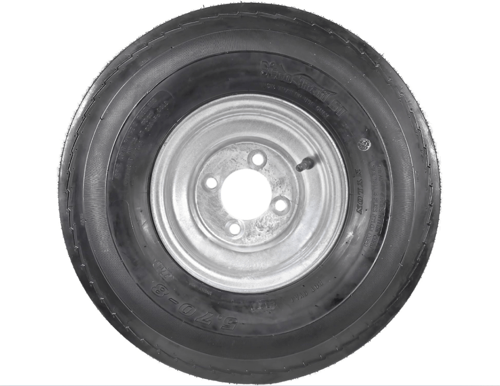 8” Wheel and Tyre assembled Centre: 4 x 4”, Tyre: 570 x 8” pneumatic tyre , Galvanised Rim