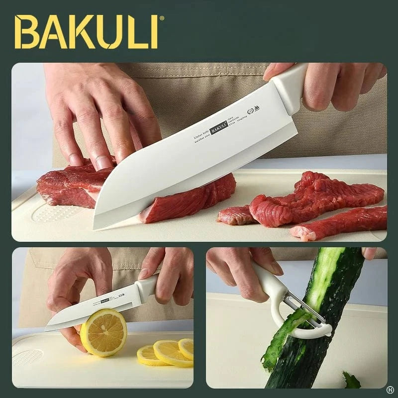 BAKULI-1/2pc Macaron Pure White Kitchen Knife Set Antioxidant Coating More Durable Kitchen Aesthetics Fruit Knife Meat Cutter