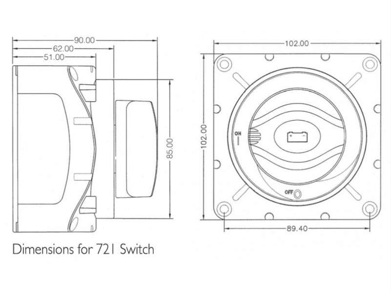 Rated at 600 amps continuous and 2500 amps cranking. It is well suited to larger vessels. As with the 701, the 720 can be recessed or surface mounted. The 720 uses the same style of self cleaning sliding contact as used in the 701.