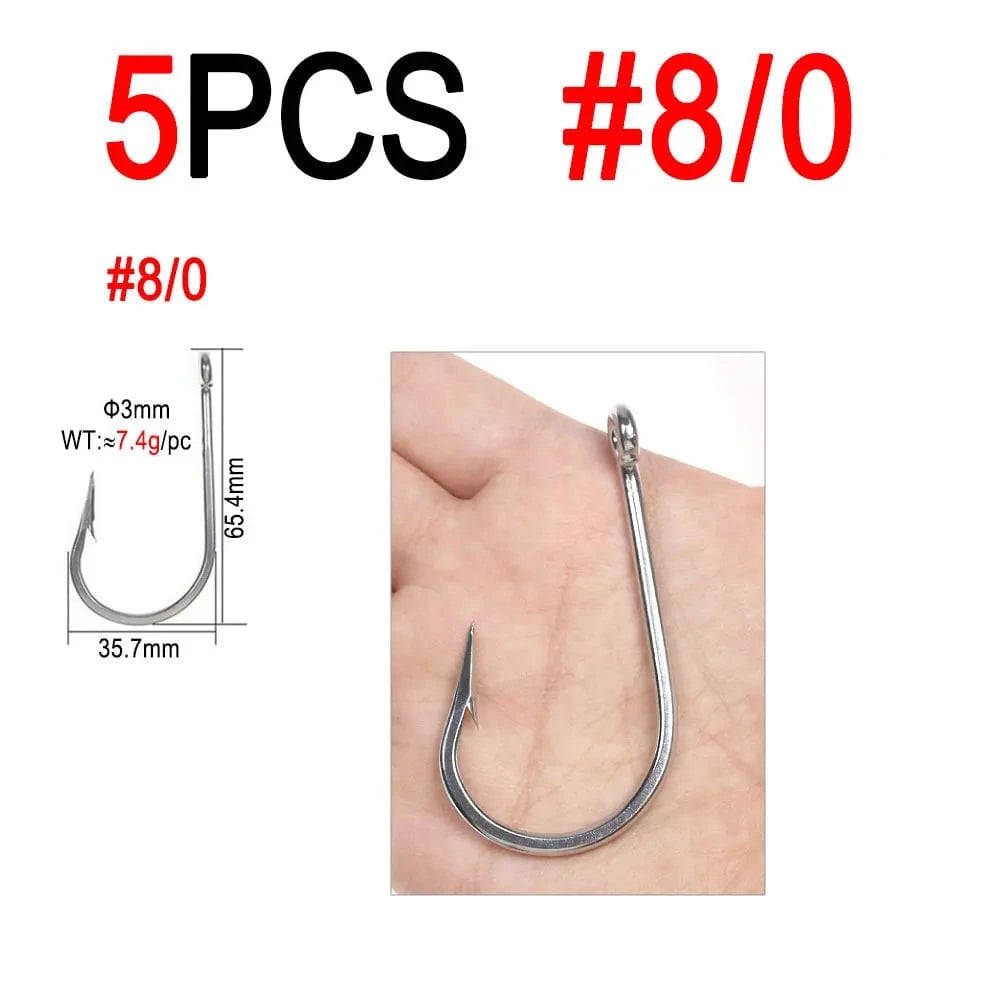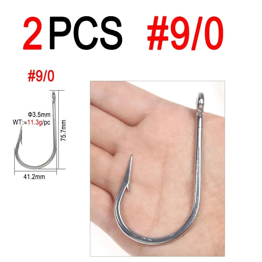 Product Feature: 420 Stainless steel material, anti-rust and anti-corrosion, closed eye design, perfect for trolling, chunking or jigging fishing, super sharp tip with barb, inline hook design, easy to catch fish, strong wire and forged shank, heavy-duty hook.