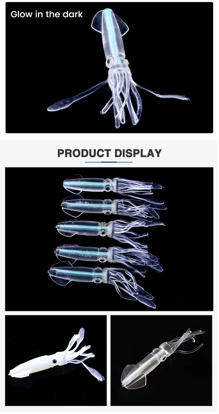 BURLE Luminous Soft Lures Mix Oiled Octopus Soft Skirts Squid Lures Artificial Soft Squid Jig Custom Fishing Lures