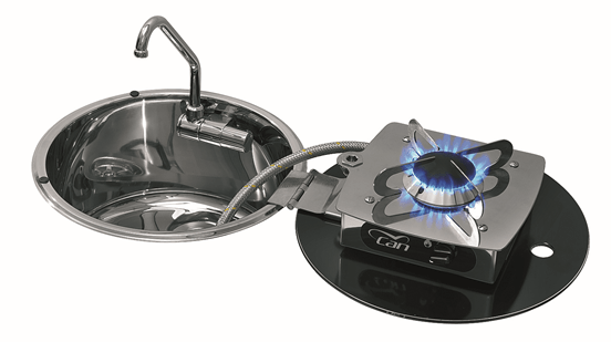 CAN Round Flap Hob Unit - Stainless Steel Hob with Sink Combo 'Foldy' Folds into a Compact Size.