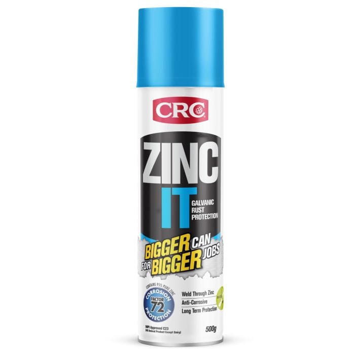CRC Zinc It is a weld through a single component zinc-rich compound that offers the same advantages as hot-dip galvanising by forming a highly-protective coating with 95% highest purity zinc on bare steel or iron surfaces. It is ideal for repairing damaged animated surfaces or as a convenient and easy-to-apply alternative if hot-dip galvanising is not available.