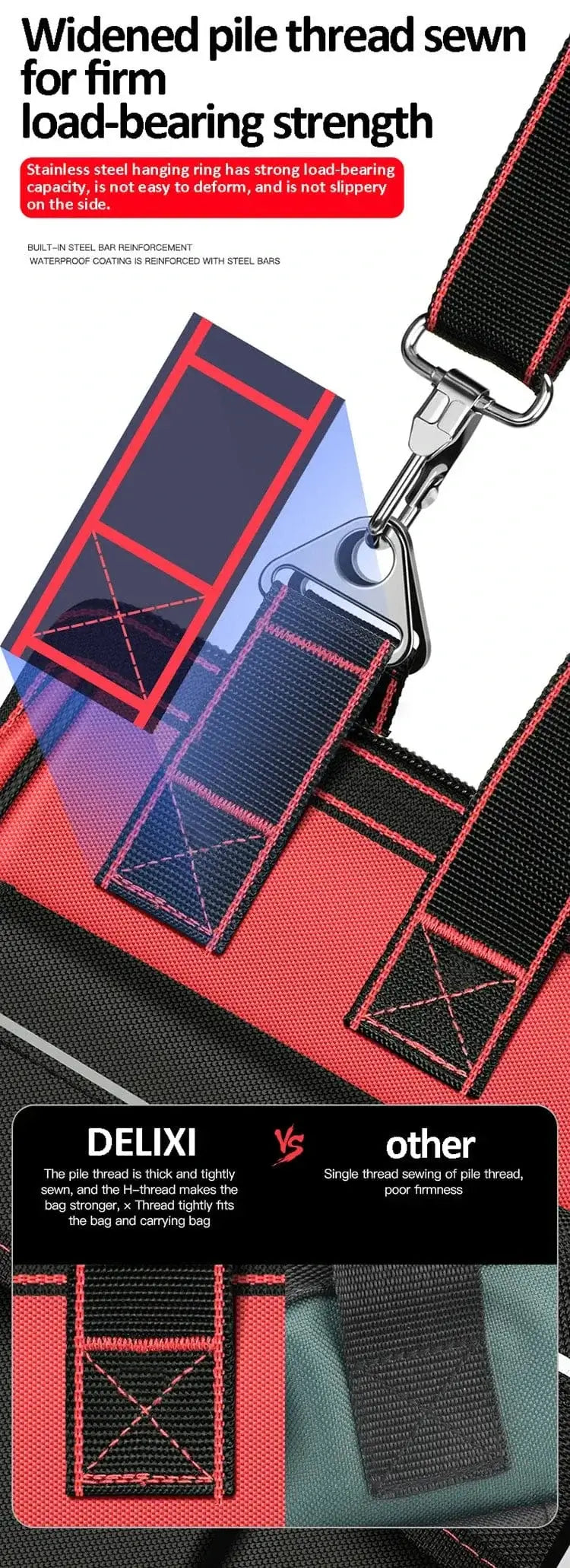 2. 【Strong bearing capacity】, 8 steel nails for reinforcement+cross wiring+double 1680 Oxford cloth.