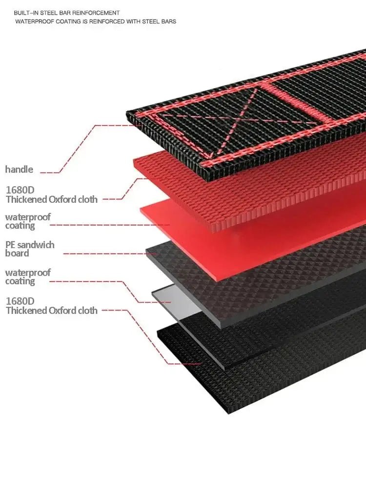 9. 【Thicken 5 layers of fabric】, 2 layers of thick Oxford cloth +2 layers of waterproof layer+thick PE board.
