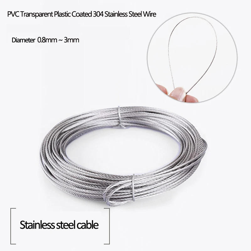Diameter 0.3--8mm,20 to 100 Meters 304# Stainless Steel Wire Rope Soft Cable Fishing Clothesline Lifting Rustproof Line