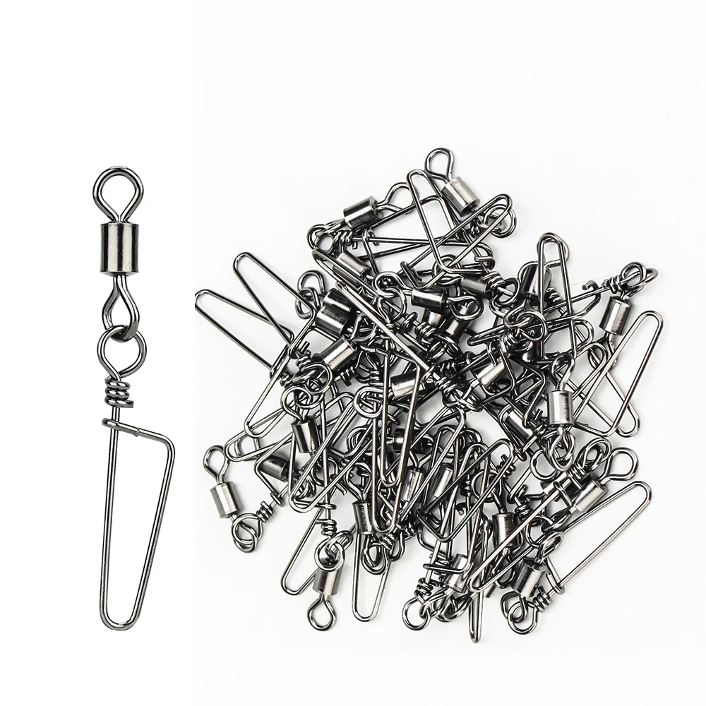 DNDYUJU 50pcs Fishing Rolling Bearing Swivels Solid Ring Interlock Snap For Fishhook Lure Fishing Connector Tackle Accessories