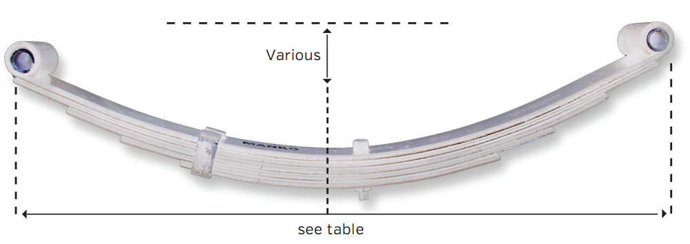 Trojan Double Eyed Multi-leaf Springs DACRM 1750kg Pair - Trojan Dacromet-coated 6 Leaf Double Eyed Spring. Code T260060D