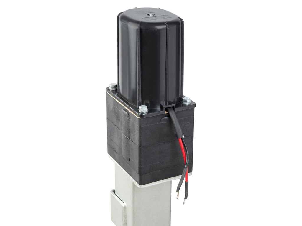 12 DC volt only. Simple quick adjust 2nd stage leg. Built in overload clutch. Does require welding to attach to trailer. Optional three position switch available. Stroke of 530mm. Extended length 1879mm. Removable foot pad.