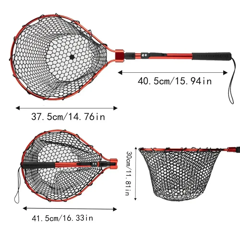 1.Aluminum Alloy Rod Body: With a concave and convex design for anti-slip and anti-rollover performance, this fishing net provides a comfortable grip due to its rubber handle and aluminum alloy rod body. Its easy maneuverability ensures a successful catch every time.
