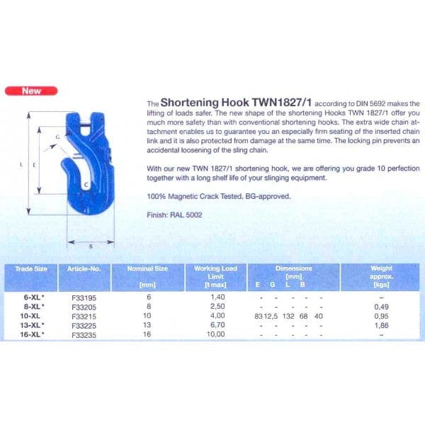 Grab Hook G100 - Thiele XL Clevis - 10mm 4T - Made in Germany Standards DIN5692 EN12195-3 Product No. F33215