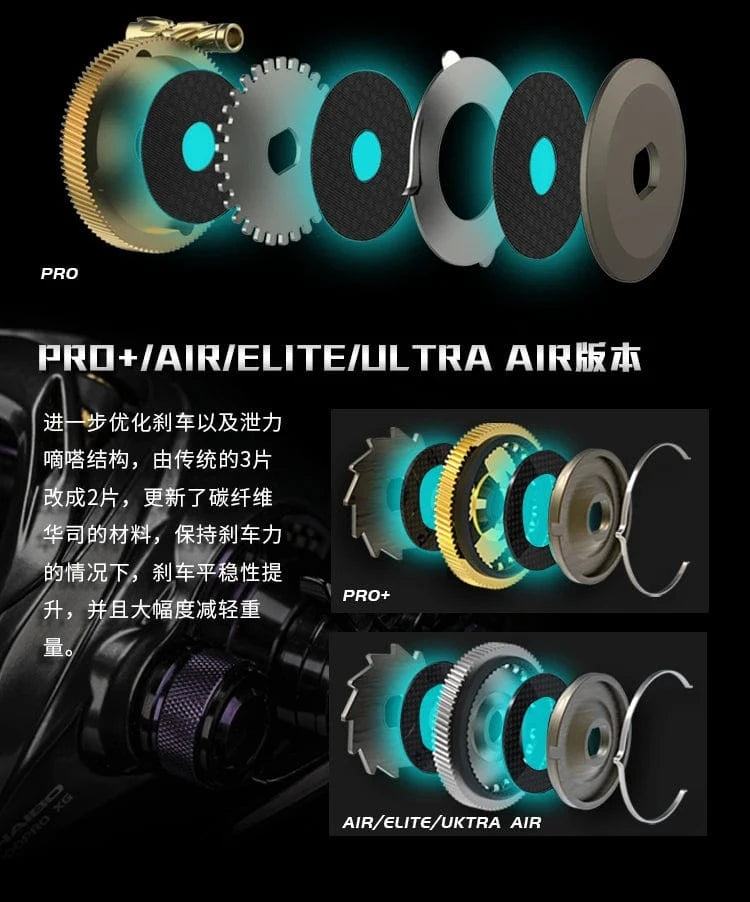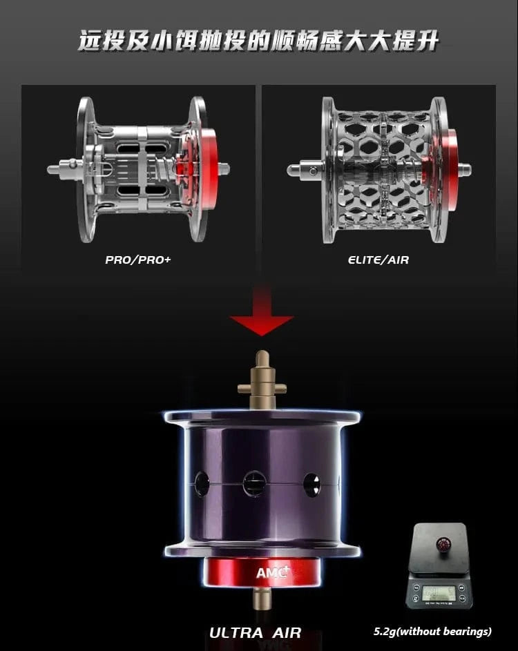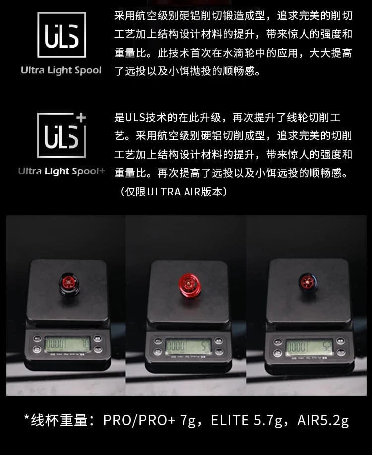 On the basis of PRO, a substantial weight reduction has been achieved, reaching a weight of 175 ""golden"" universal Reel. On the basis of retaining the copper gears, a new balance of durable performance and lightweight has been achieved. The newly upgraded brake structure and tick structure provide angler with a better experience.
