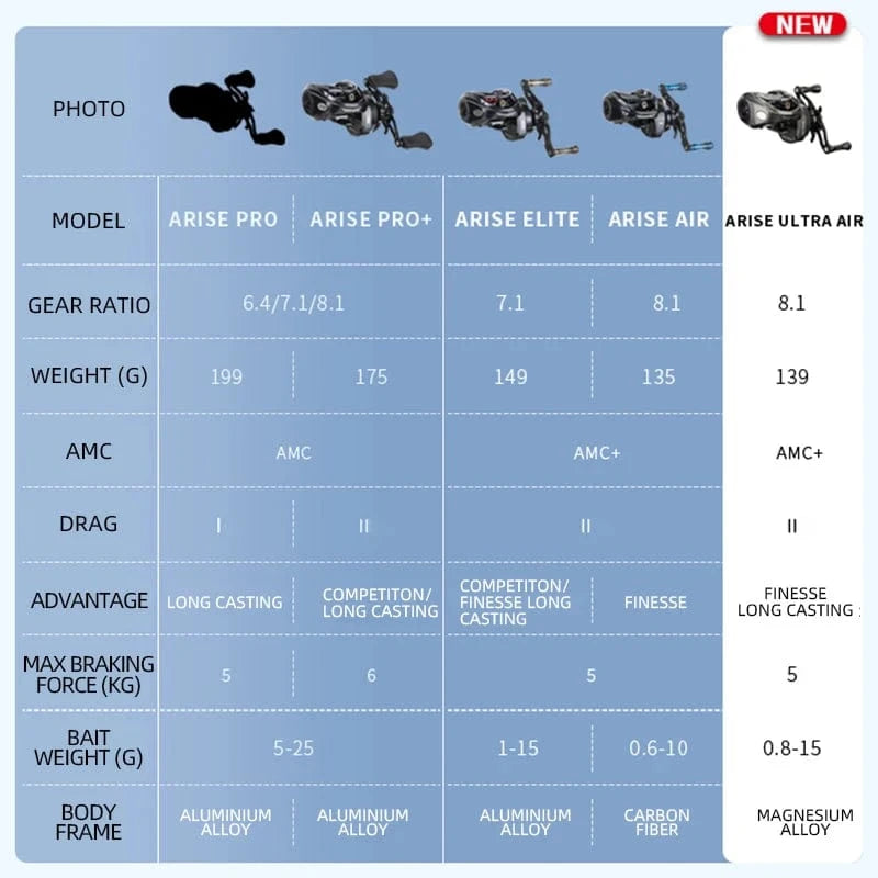 Arise Elite baitcasting reel, equipped with SSF metal main frame and AMC+ damping system, the whole reel weighs only 149g! Under the condition of ensuring the compatibility of conventional bait weight, it has achieved 1g throwing. It is Haibo's milestone casting reel that combines micro objects with fineness, practicality and durability to a higher goal.