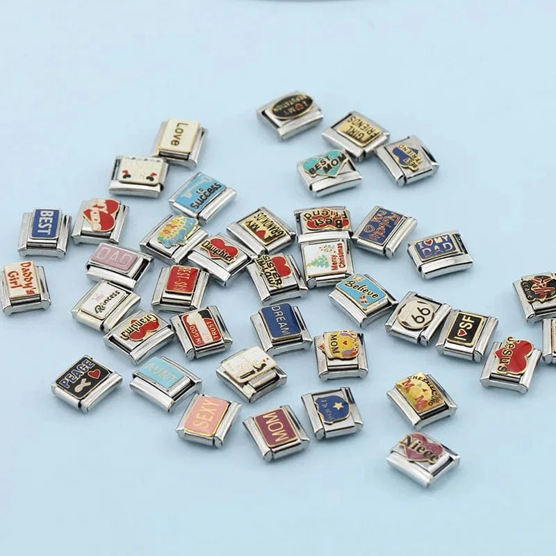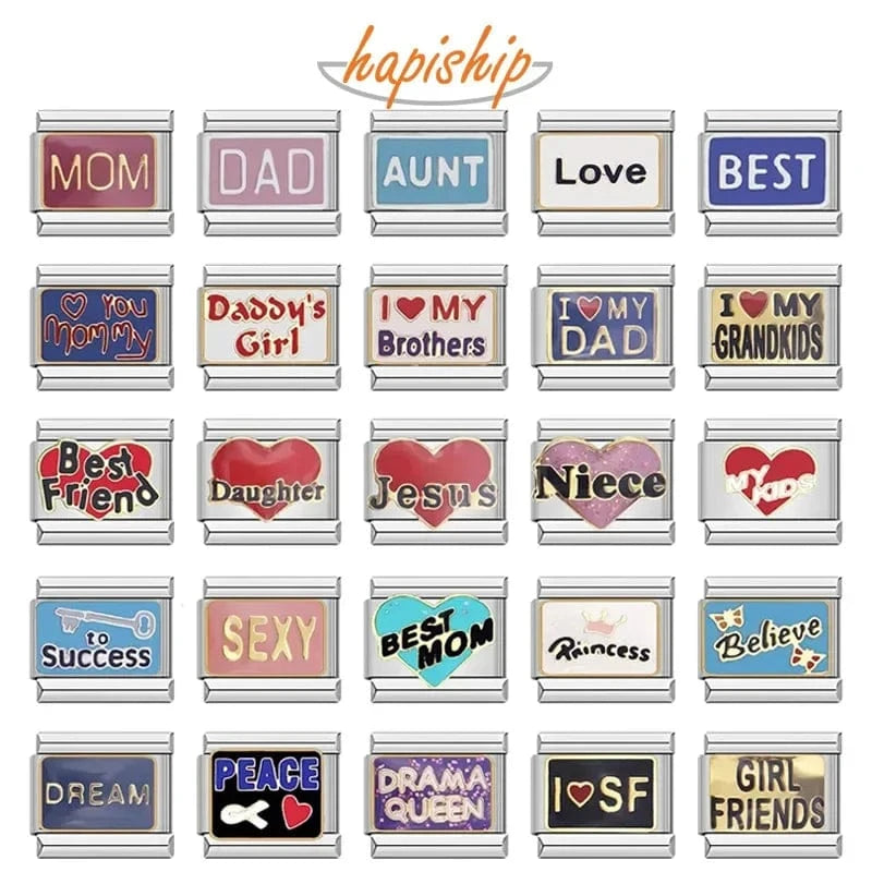 Hapiship New Popular Fashion Sweet Aunt Mom Dad Love Niece Charm Links Fit 9mm Stainless Steel Bracelet Making DIY Jewelry DJ132