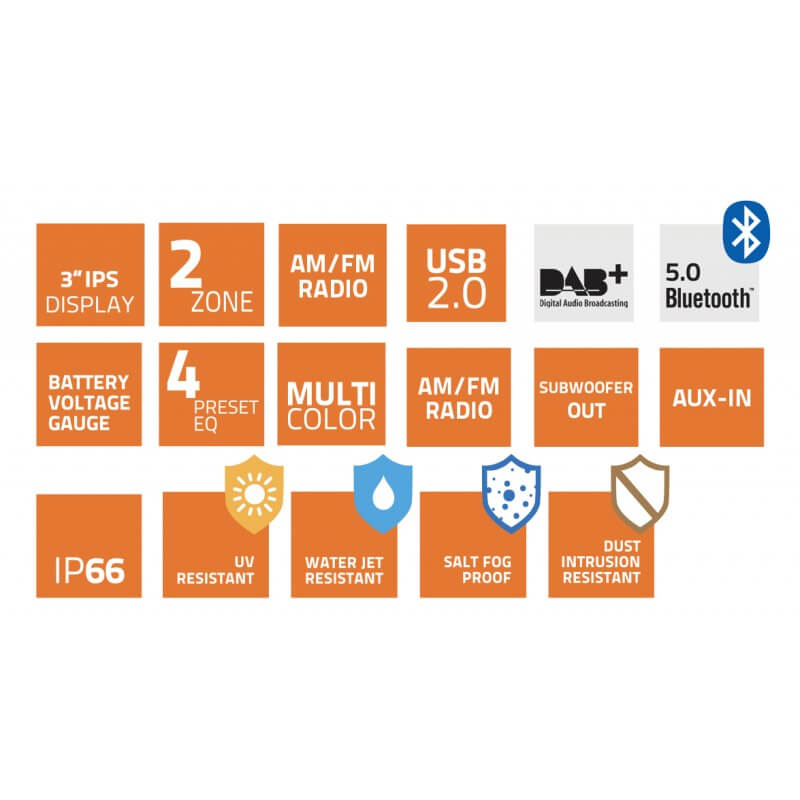 Upgrade your on-water audio experience with the Hertz audio pack marine speakers, a premium combination of advanced sound engineering and sleek design. This pack includes the HMR20 Marine Head Unit paired with HEX 6.5” Black Sport Speakers with LED, delivering superior sound performance built to withstand the toughest marine environments.