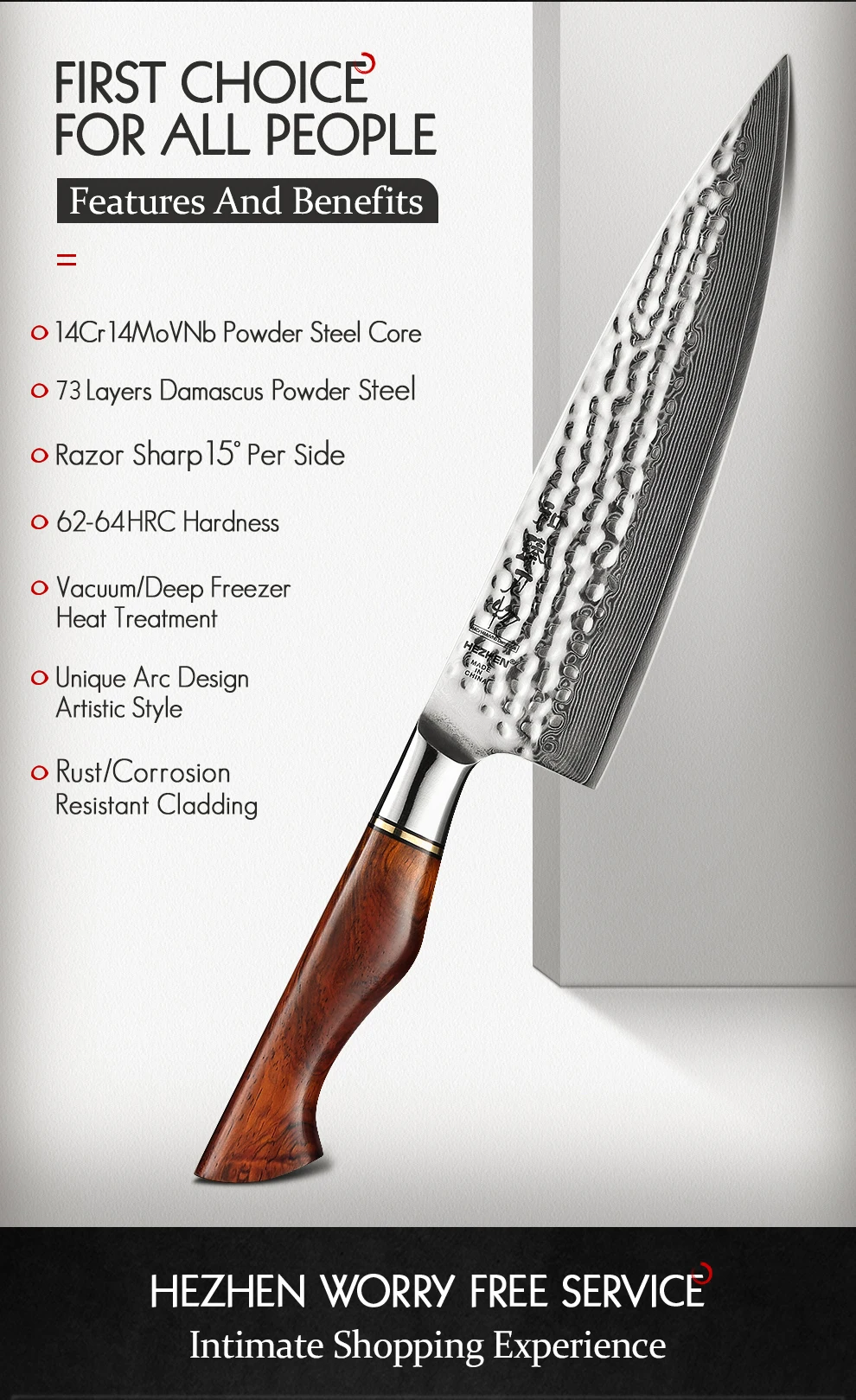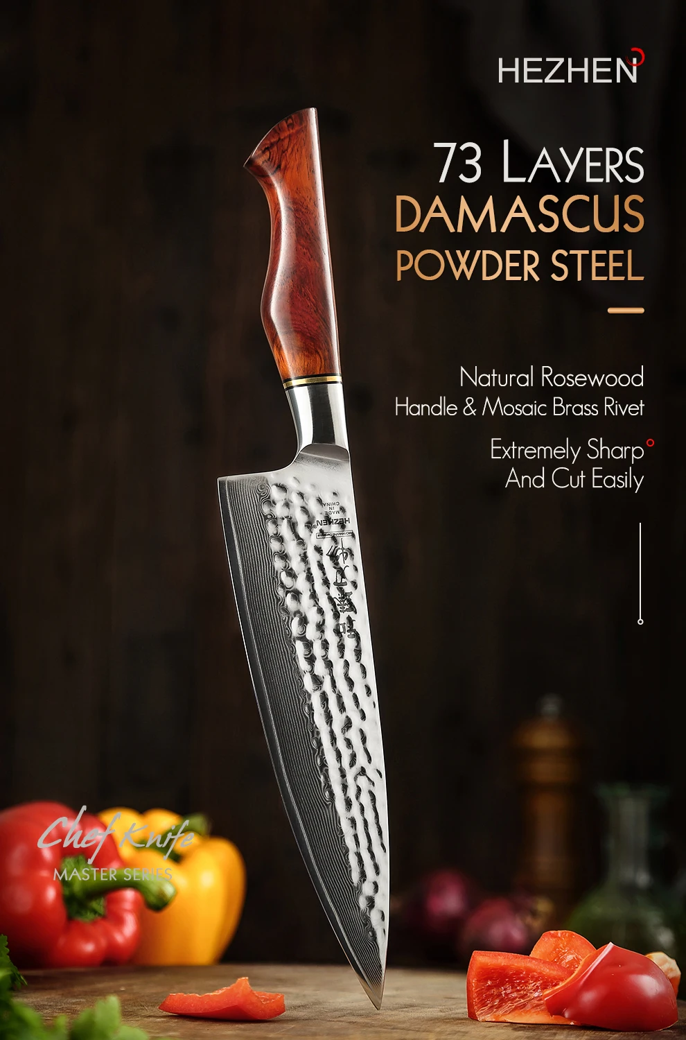 HEZHEN Master Series 73-Layer Powder Damascus Steel Chef Knife