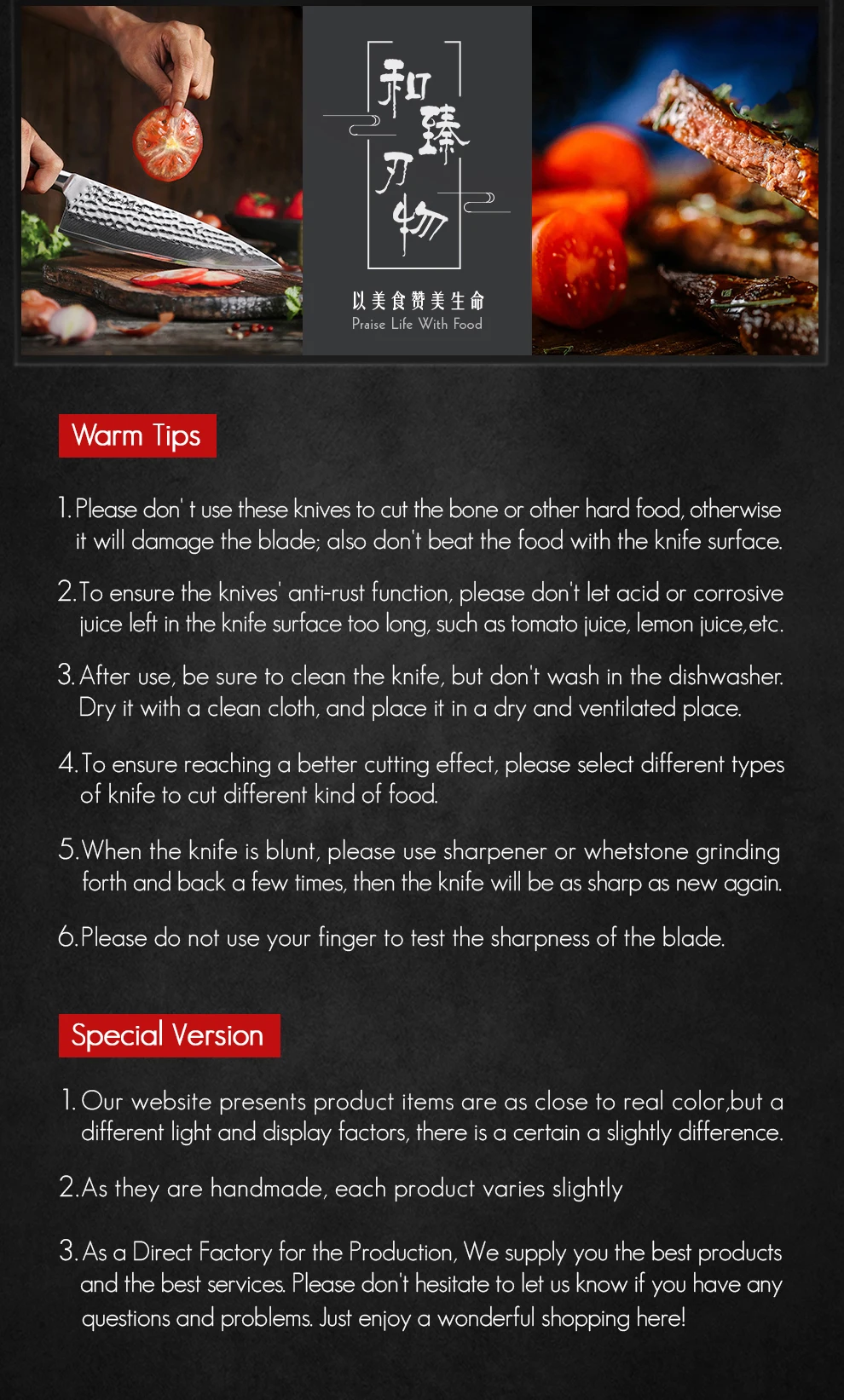 Handle Material:High quality nature rosewood handle & mosaic brass rivet