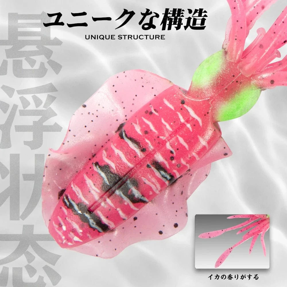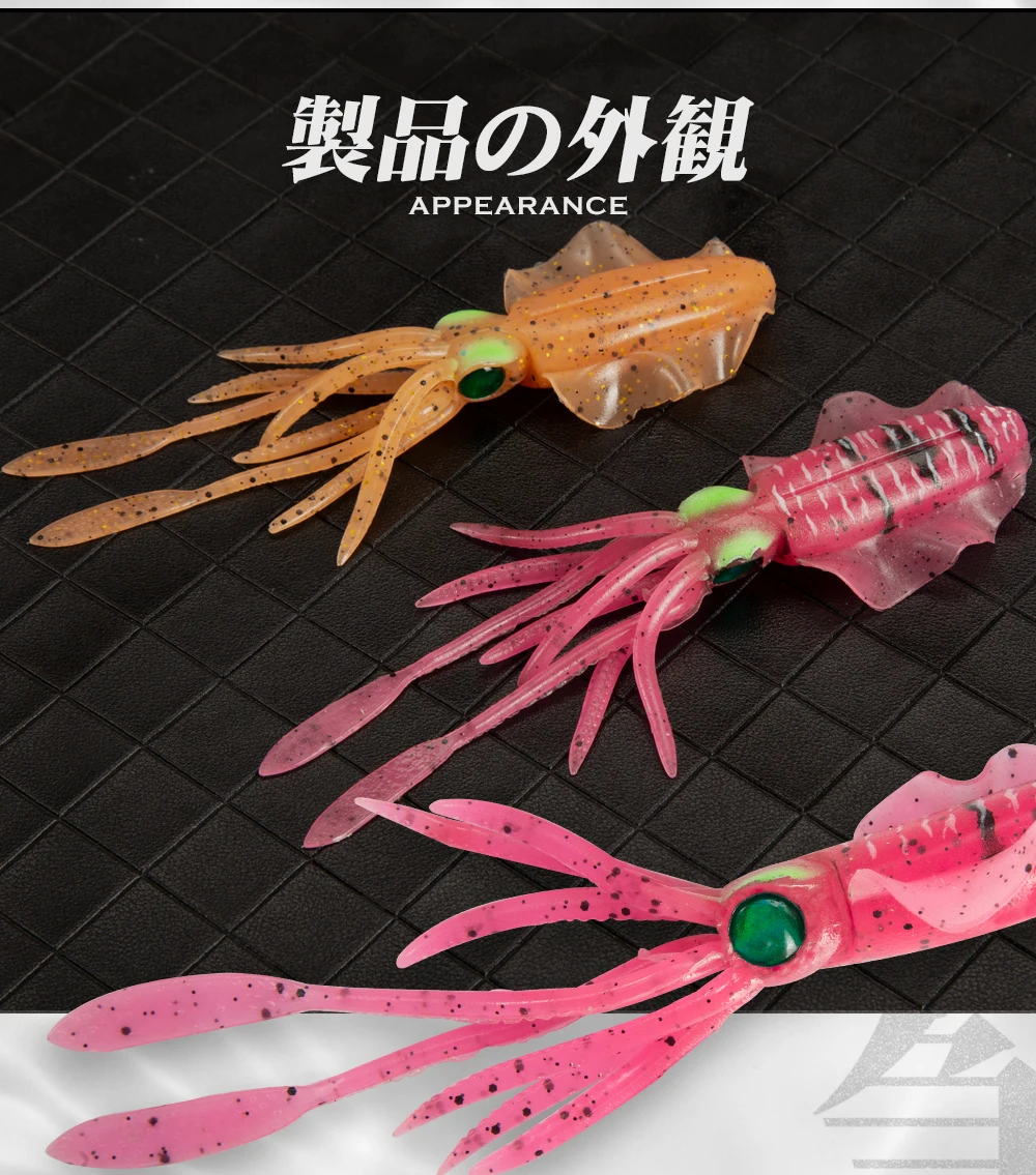 Based on the scan of a real Squid, with superb details and a super realistic profile. The lure swims and looks just like a real squid and will fool even the most vary predator fish to attack it! The loose body PVC lure can be rigged in many ways, it has a line thru channel for easy line thru rigging and a slot in the back for weed less EWG rigging. Can be rigged easy on jig heads and cork screw heads. The body fins pulse and the tentacles vibrate lively as the lure moves thru the water – making this lure the perfect squid imitation!
