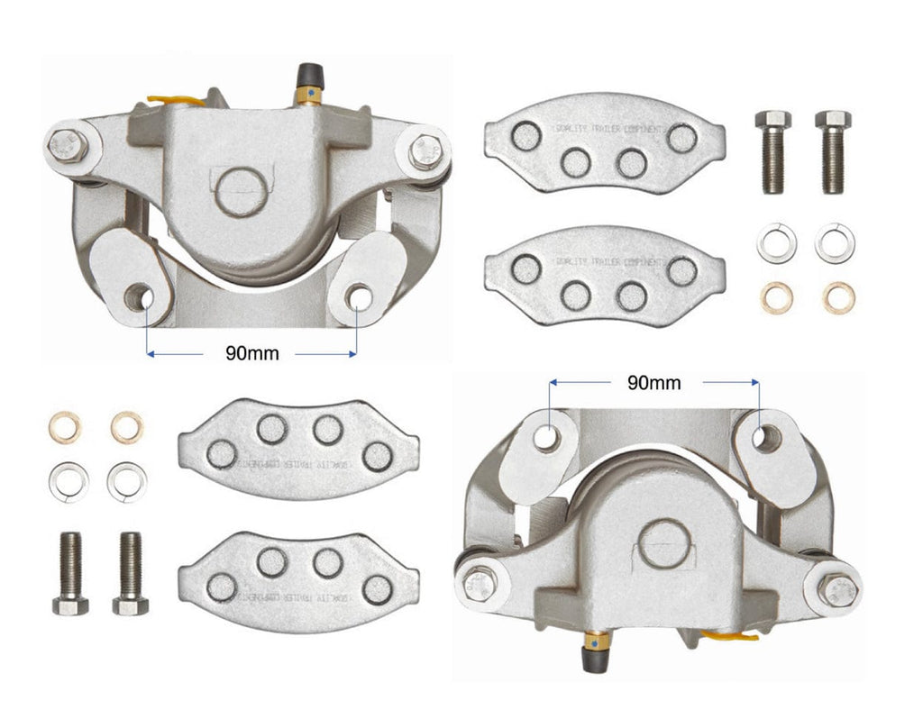 These are cast in high-grade Stainless Steel and offer total protection against corrosion. Ideally suited for fitment to boat trailers. These calipers are also fitted with Phenolic pistons and other fittings are either brass or stainless steel. The brake pads supplied with these calipers have a stainless steel backing plate, which prevents brake lining separation from corrosion. Other specifications are the same as the above cast iron version.