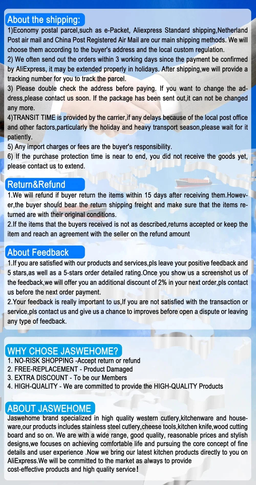 3.Rosewood Design: The carefully constructed rosewood handle,withstands cold, heat, corrosion, and moisture.