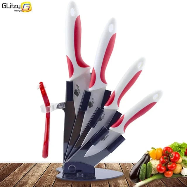 Kitchen Knives Ceramic Knife Set 3 4 5 6 inch Chef Knife Stand Holder Utility with Peeler Fruit Vegetable White Blade Anti-slip