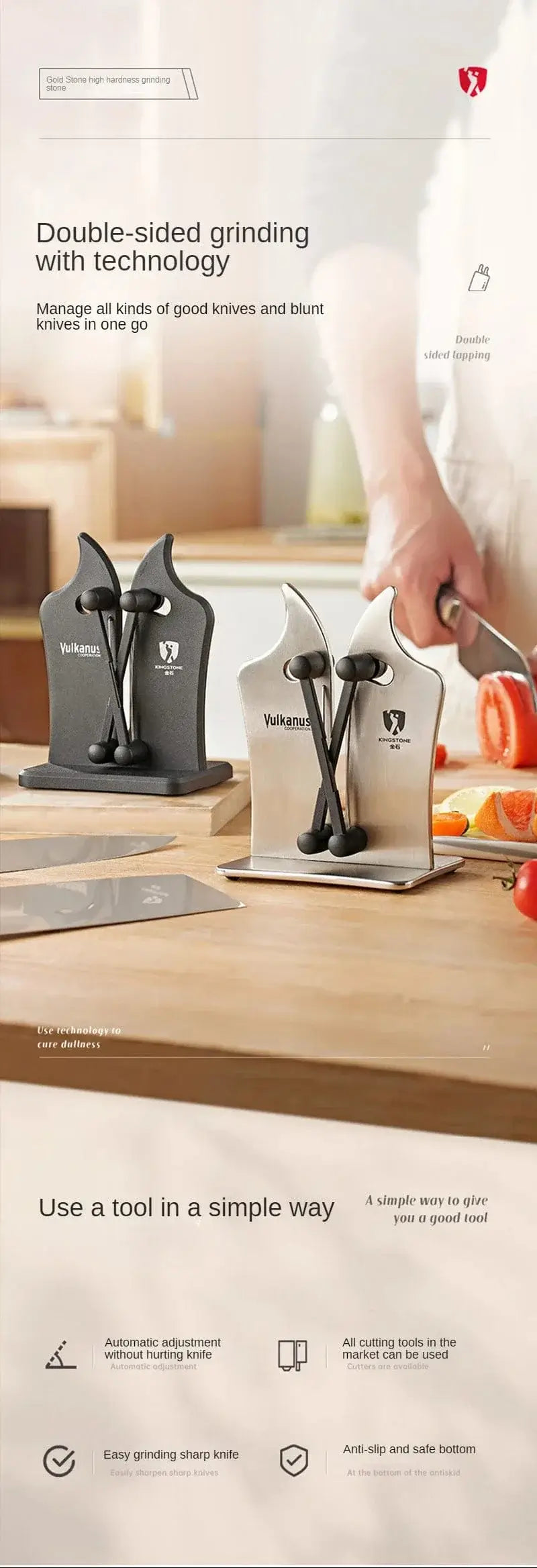 Fastest and easiest way to sharpen any knife.Precision ground tungsten-carbide safely sharpens all types of knives including serrated and high-quality Damascus knives. Rugged ABS base.