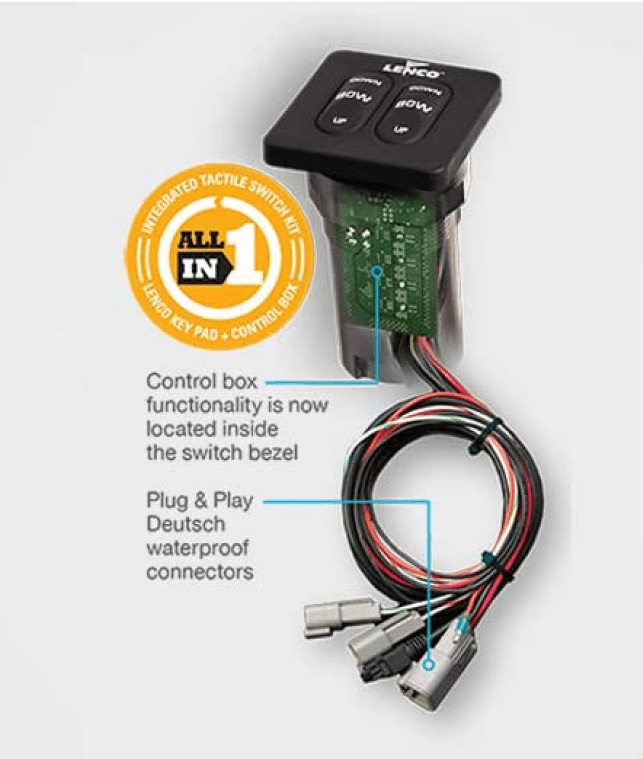 Complete kit of 12" (Length) X 12" (Width) Lenco Trim Tabs with LED indicator switch panel