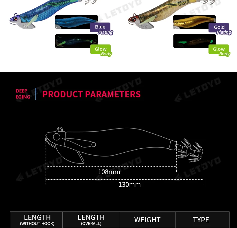 LETOYO Luminous Plating squid bait tip run sinker eging squid jig Artificial baits Cuttlefish Octopus EGI Sea Fishing lures