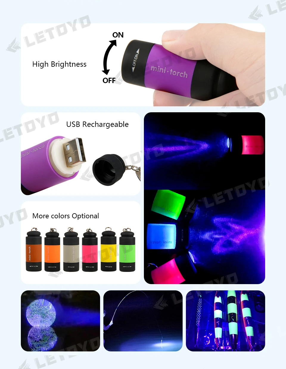 LETOYO UV USB Flashlights Led Mini Light Portable Rechargeable Waterproof Flashlight for squid jig Sea fishing accessories