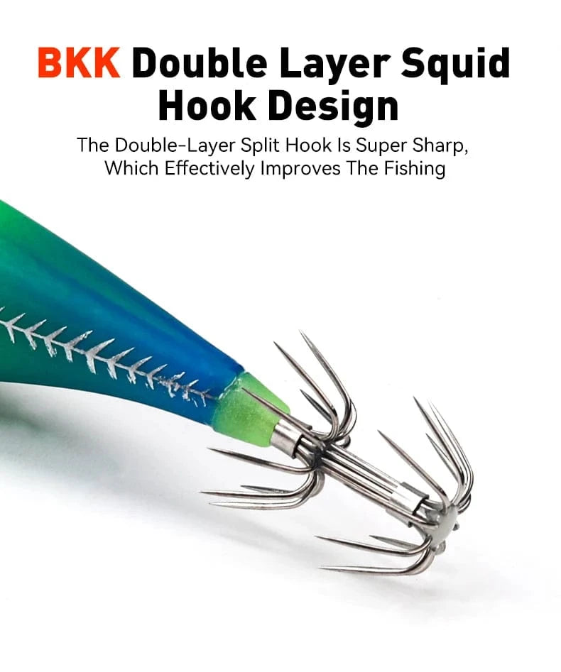 2. BKK Sharp Hook: The BKK hook is super sharp, which effectively improves the fishing success rate of the luminous saltwater squid fishing tackle and prevents the fish from escaping.