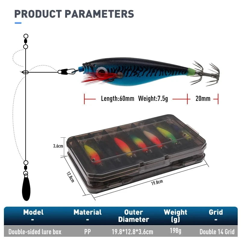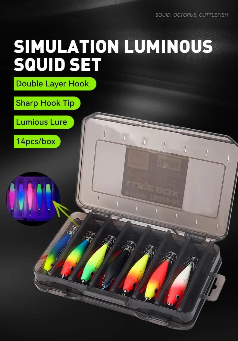 LEYDUN Luminous Horizontal Squid Jig Wood Shrimp Squid Hook 5pcs 14pcs Fishing Lures Octopus Cuttlefish Shrimp Saltwater Baits