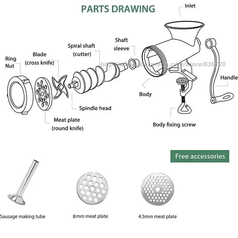 Manual meat grinder simulates the process of manual meat mincing, which greatly retains the original taste of the meat, as well as the nutrition of the meat itself, does not damage the fiber of the meat. Keep the meat fresh,100% lock in the texture and nutrition of the meat. The cutting blade is sharp enough and will not slip when the meat is grinded, which greatly improves the efficiency of the meat grinder.