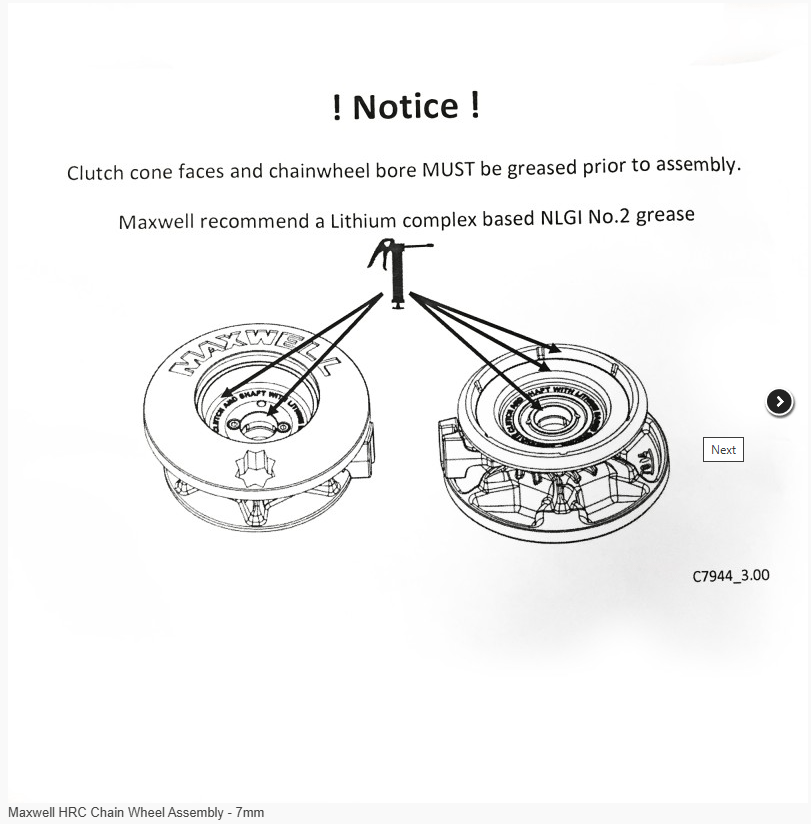 Chainwheel assembly to suit Maxwell HRC winch – 7mm.