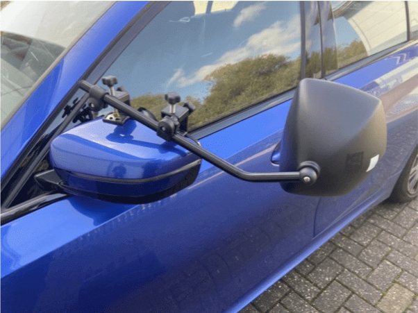 One of the key developments of the Aero Platinum Mirror is the inclusion of new flexible, rubber faced stainless steel, sprung loaded gripper plates. These are over 50% larger than the standard Aero 3 mirror pads. This design enables the gripper to ‘form’ to the shape of the vehicle mirror bezel. This significantly increases the surface contact area, providing improved grip and stability to the towing mirror. The Platinum clamp has also been enlarged, now accepting vehicle mirror bezels up to 25mm in thickness. Also now fitted with a larger diameter arm, this offers even further stability to the mirror, and has adequate reach to be used on caravans up to 2.55 meters wide.