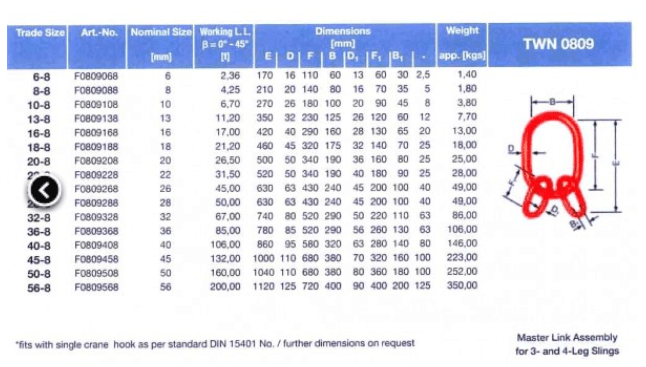 Multi Ring - Thiele TWN0809 GK8 - 13mm 3-4Leg - International Standards EN1677 Products No. F0809138