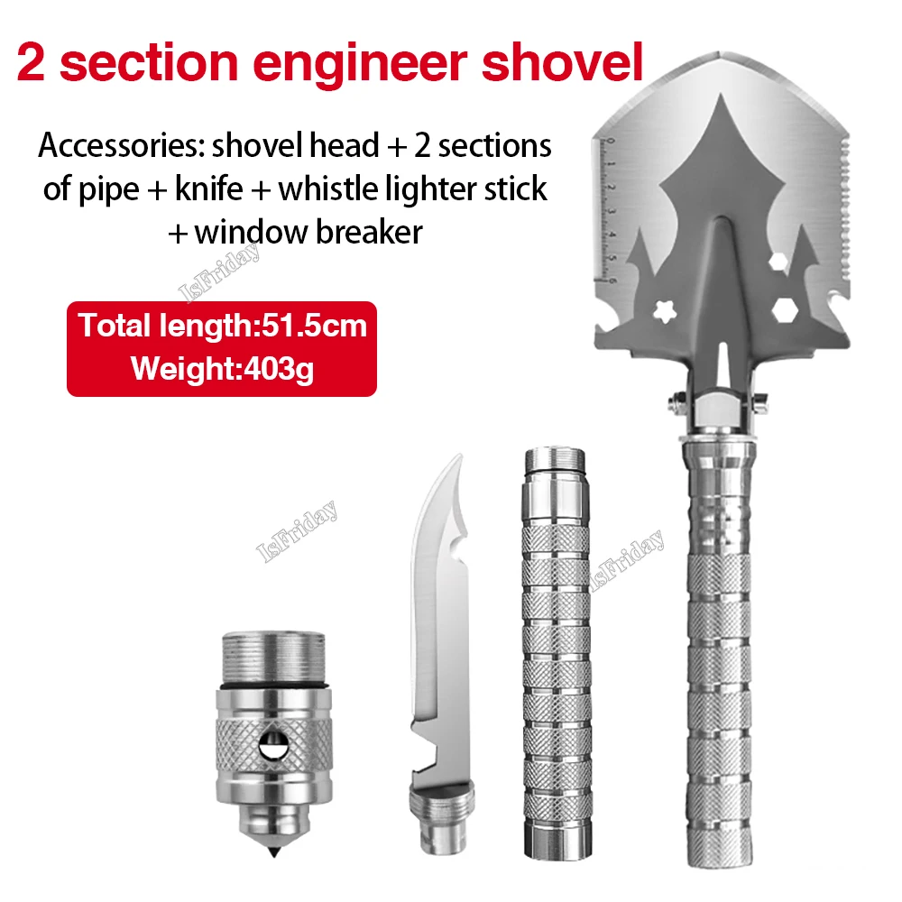 Multifunctional Military Shovel 4 Section Pipe Folding Shovel and Knife Outdoor Fishing Camping Survival Set Garden Tools Kit